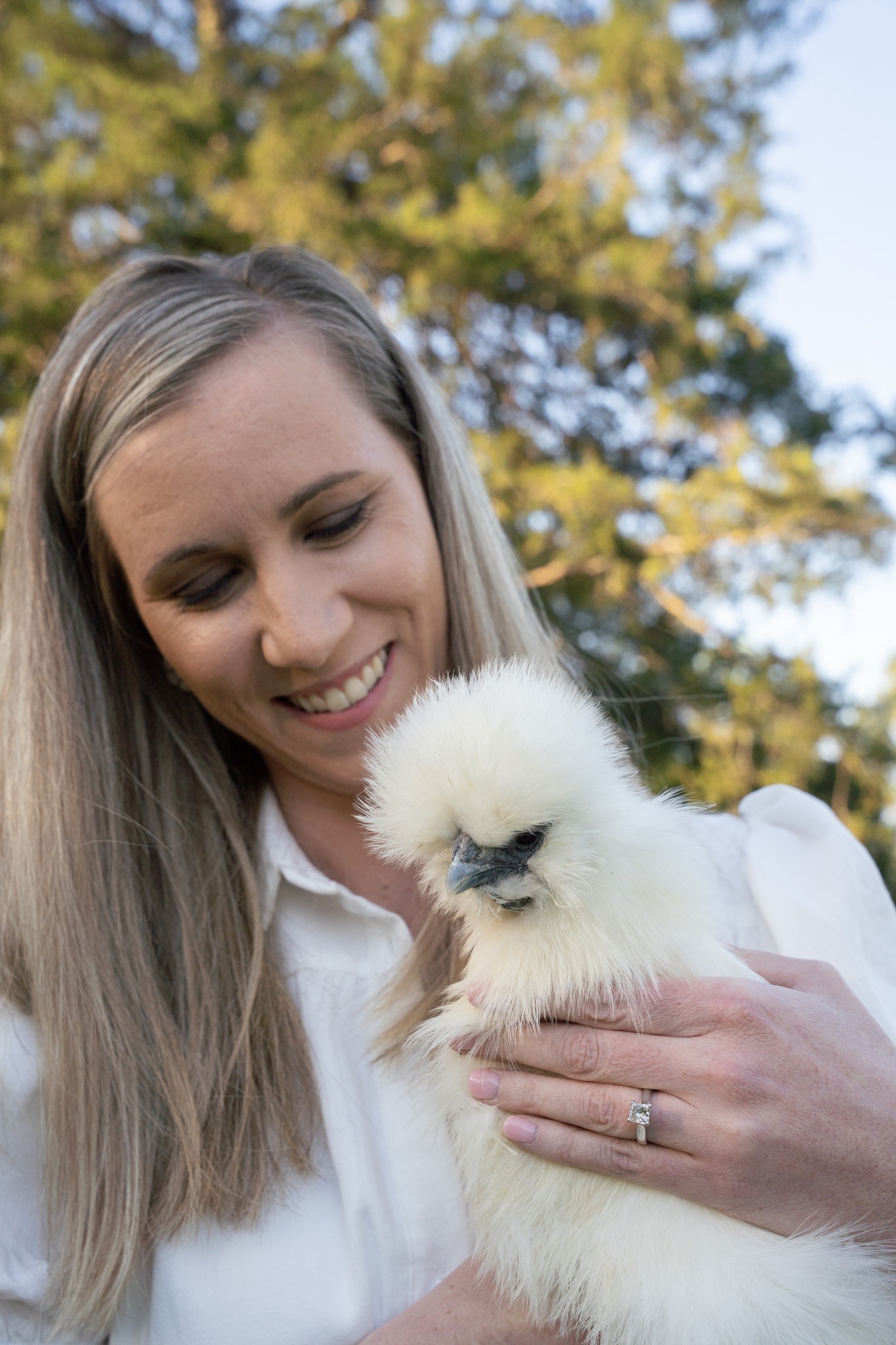 In my free time, I serve as a volunteer minister at Church of the Nativity on the Creative Tech video team. I also enjoy spending time with my husband, David, my newborn daughter, and bonus kids, all while tending to my farmette of 2 cats, 2 bunnies, and many chickens.
